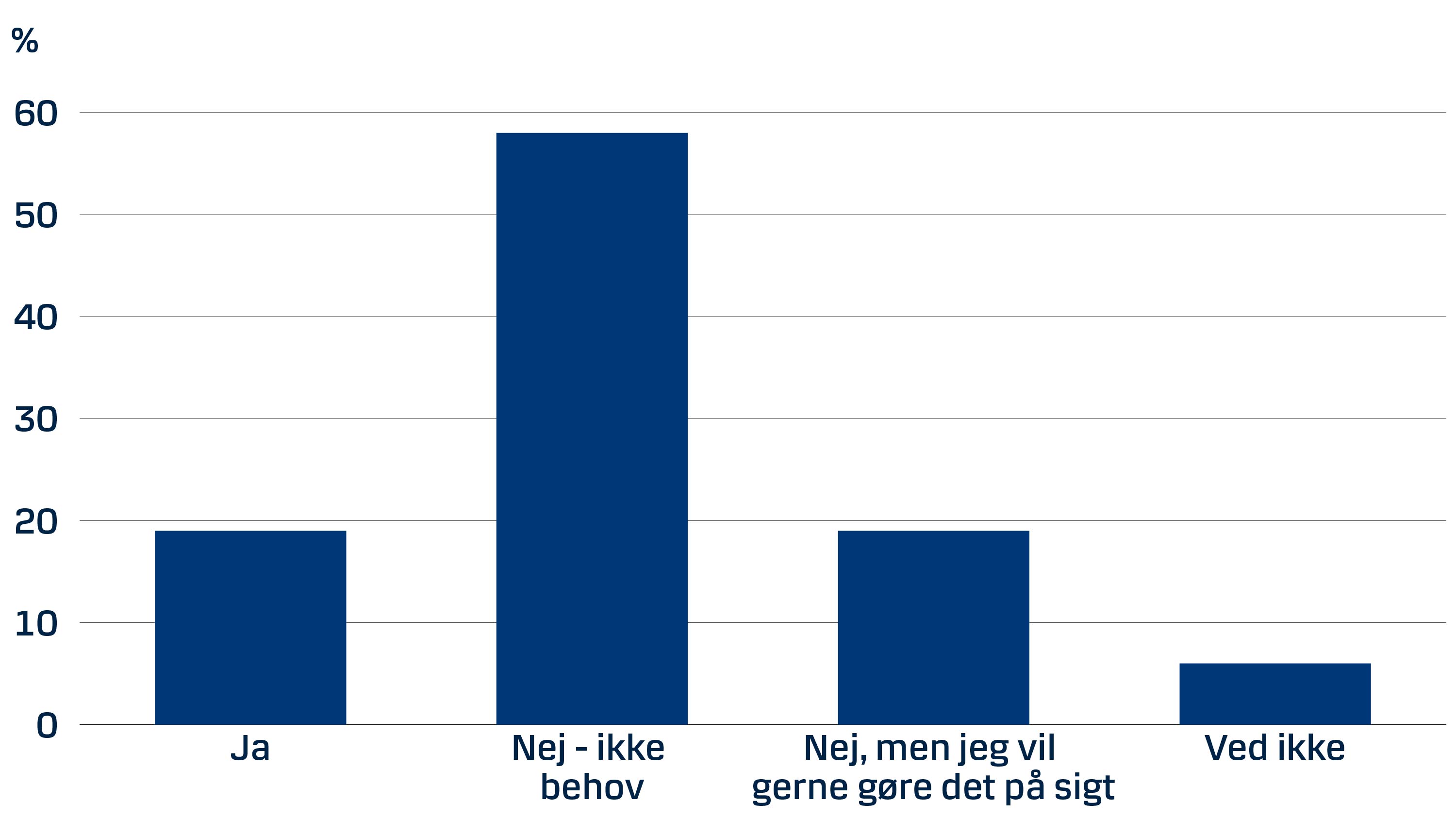 Lidt mere end halvdelen af boligejerne vurderer dog ikke et behov, hvilket jo er i god tråd med andelen af boligejere, som ikke har de store bekymringer.