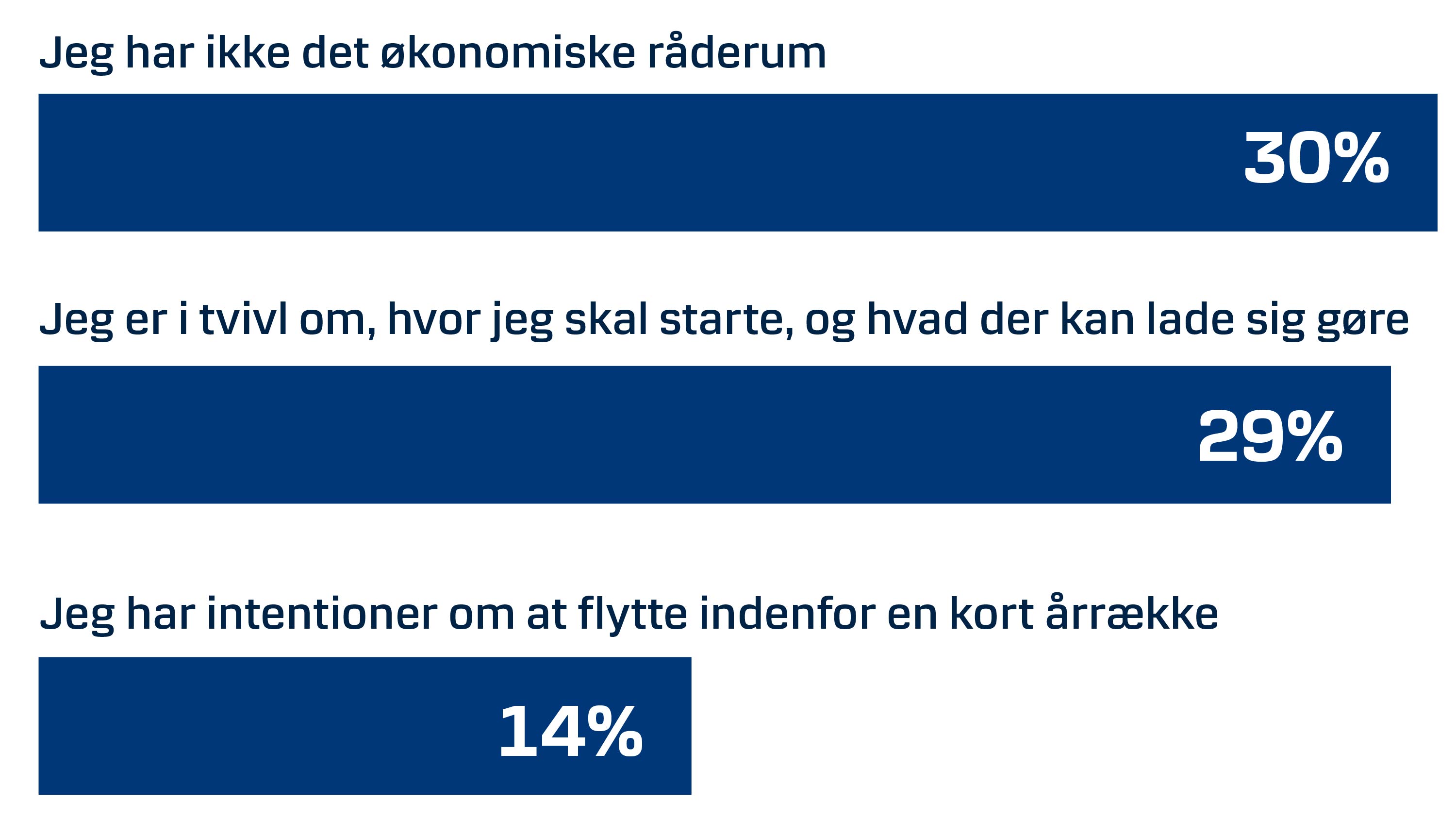 I undersøgelsen svarer næsten 30 % af boligejerne, at de simpelthen er i tvivl om, hvor de skal starte, og hvad der kan lade sig gøre.