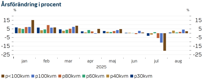 ”Bostadsmarknaden är fortsatt skör, men det är positivt att priserna ser ut att ha vänt upp i augusti. Samtidigt är priserna ungefär på samma nivåer för ett år sedan. Riksbankens räntesänkning i juni bör ge visst stöd till priserna framåt, men hushållen anpassar sig fortfarande till att räntor väntas ligga kvar på ungefär dagens nivåer på sikt.”